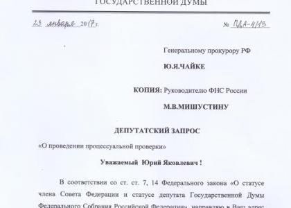 Депутат Госдумы от фракции КПРФ Денис Парфёнов обратился в Генеральную прокуратуру, а также в Федеральную налоговую службу России с просьбой провести проверку законности и обоснованностиподобных действий.