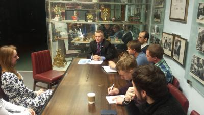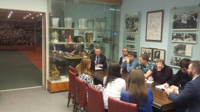 С.М. Пантелеев встретился с лидерами и представители молодежных структур крупнейших предприятий города: АО «ГОЗ Обуховский завод», ОАО «Кировский завод», АО «Адмиралтейские верфи», ГУП «Водоконал Санкт-Петербурга», ОАО «Климов», ОАО «Концерн «НПО «Аврора», АО «АТОМПРОЕКТ», ПАО «Ленэнерго», ФГУП «Крыловский государственный научный центр», АО «Гипроспецгаз», ОАО Судостроительный завод «Северная верфь» и др.