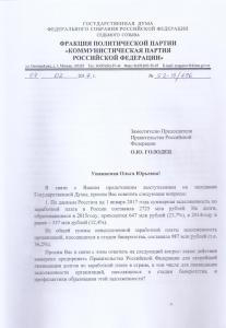 8 февраля перед Государственной Думой будет отчитываться заместитель председателя правительства Ольга Голодец. В связи с этим лидер КПРФ Геннадий Зюганов заранее направил ей вопросы от партии. Все они так или иначе касаются долгов по заработной плате, которые, по данным Росстата, на 1 января 2017 года составили 2725 млн рублей.