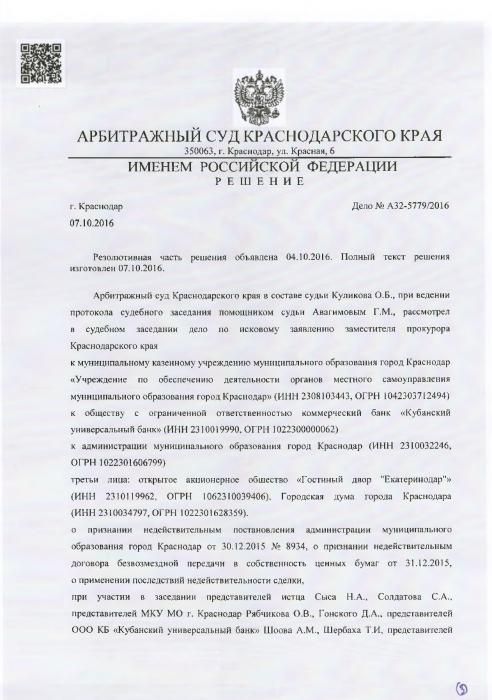 Краснодар. Расследование Обухова дало результат: прокуратура вернула городу акции на 350 млн рублей