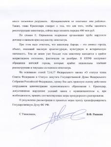 Ранее на эти нарушения внимание Рашкина обратил депутат ГД 6-го созыва С.П. Обухов. Об этих нарушениях также сообщалось в интервью Главы муниципального образования г. Краснодар Е. Первышова «Тратить деньги на прожекты не будем» («Коммерсант»).