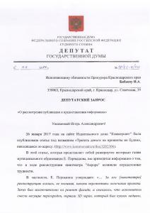 КПРФ В.Ф. Рашкину пришел ответ на его запрос от и.о. прокурора Краснодарского