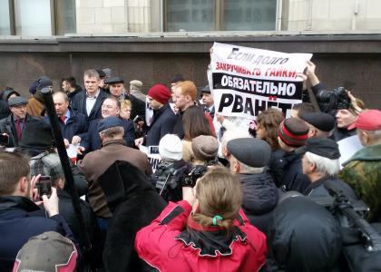 Этим коммунисты и избиратели выразили протест против законопроекта, согласно которому встречи депутатов с избирателями будут приравнены к митингам и их нужно будет согласовывать с местными властями.