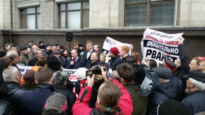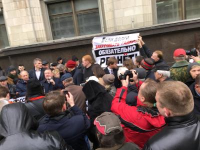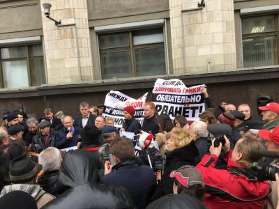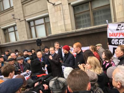 Этим коммунисты и избиратели выразили протест против законопроекта, согласно которому встречи депутатов с избирателями будут приравнены к митингам и их нужно будет согласовывать с местными властями.