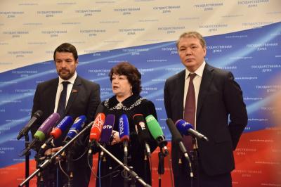5 апреля предваряя пленарное заседание в Госдуме перед журналистами выступили Председатель комитета ГД по вопросам семьи, женщин и детей Т.В. Плетнева, Председатель комитета ГД по делам Содружества Независимых Государств, евразийской интеграции и связям с соотечественниками Л.И. Калашников и Заместитель председателя комитета ГД по информационной политике, информационным технологиям и связи А.А. Ющенко.