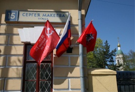 знамена с серпом и молотом на своих фасадах.