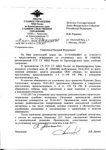 «В качестве обвиняемого по уголовному делу привлечен Исраелян Давид Сагателович, которому 30.03.2017 года предъявлено обвинение в совершении преступления, предусмотренного ч. 4 ст. 159 УК РФ. В отношении обвиняемого избрана мера пресечения в виде подписки о невыезде и надлежащем поведении», «при выполнении строительных работ на объектах долевого строительства ООО «Новер» имели место факты необоснованного завышения стоимости фактически выполненных работ и применения удорожающих коэффициентов, которые повлекли завышение расходов денежных средств дольщиков на сумму свыше 39 000 000 рублей», - сообщил депутату-коммунисту Д.В. Демин.