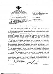 Начальник главного управления МВД России по Краснодарскому краю Д.В. Демин проинформировал В.Ф. Рашкина о ходе расследования уголовного дела, возбужденного по факту хищения денежных средств, внесенных участниками долевого строительства на возведение ЖК «Южный», застройщиком которого является ООО «Новер».