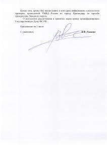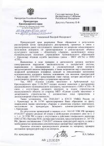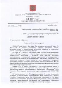 Рашкиным в адрес прокуратуры Краснодарского края был направлен депутатский