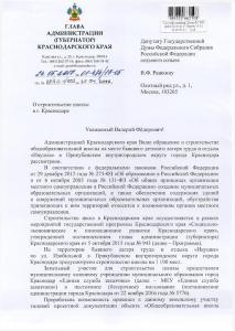 Рашкиным депутатский запрос губернатору Краснодарского края, в котором
