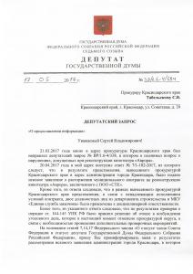 Рашкиным в адрес прокуратуры Краснодарского края был направлен депутатский