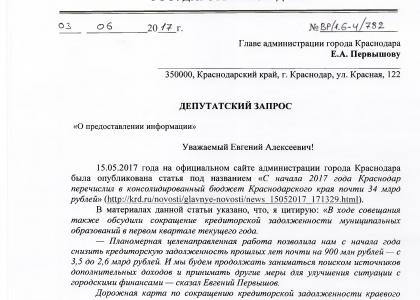 Краснодара Е.А. Первышову с просьбой проинформировать о том, какие меры