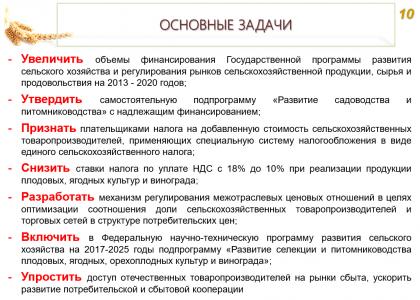 не упустить, создать условия для дальнейшего развития наметившихся «точек роста» в плодоводстве.