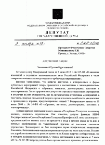 7 октября 2017 г. Ю.П. Синельщиков направил депутатский запрос Президенту Республики Татарстан о ненадлежащих действиях властей г.Казани в решении вопроса о проведении митинга.