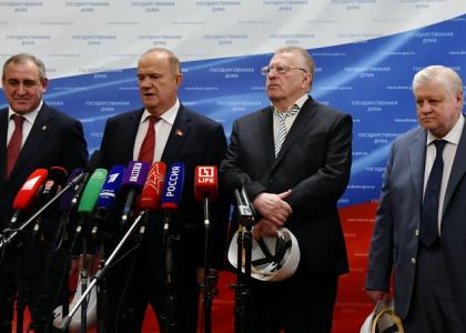 13 октября четыре лидера думских фракций, предваряя пленарное заседание в Госдуме, выступили перед журналистами. Накануне они наблюдали за ходом строительства моста в Крым. Первым выступил Председатель ЦК КПРФ Г.А. Зюганов.