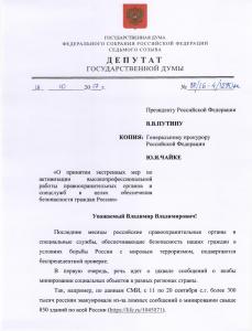 Рашкин обратился к президенту и генпрокурору с просьбой «принять меры по активизации высокопрофессиональной деятельности правоохранительных органов и спецслужб, особенно с использованием передовых технологий, в целях установления истинных организаторов всех вышеуказанных преступлений и противодействия системным попыткам терроризировать граждан России, в том числе рассмотреть вопрос о принятии соответствующих кадровых решений».
