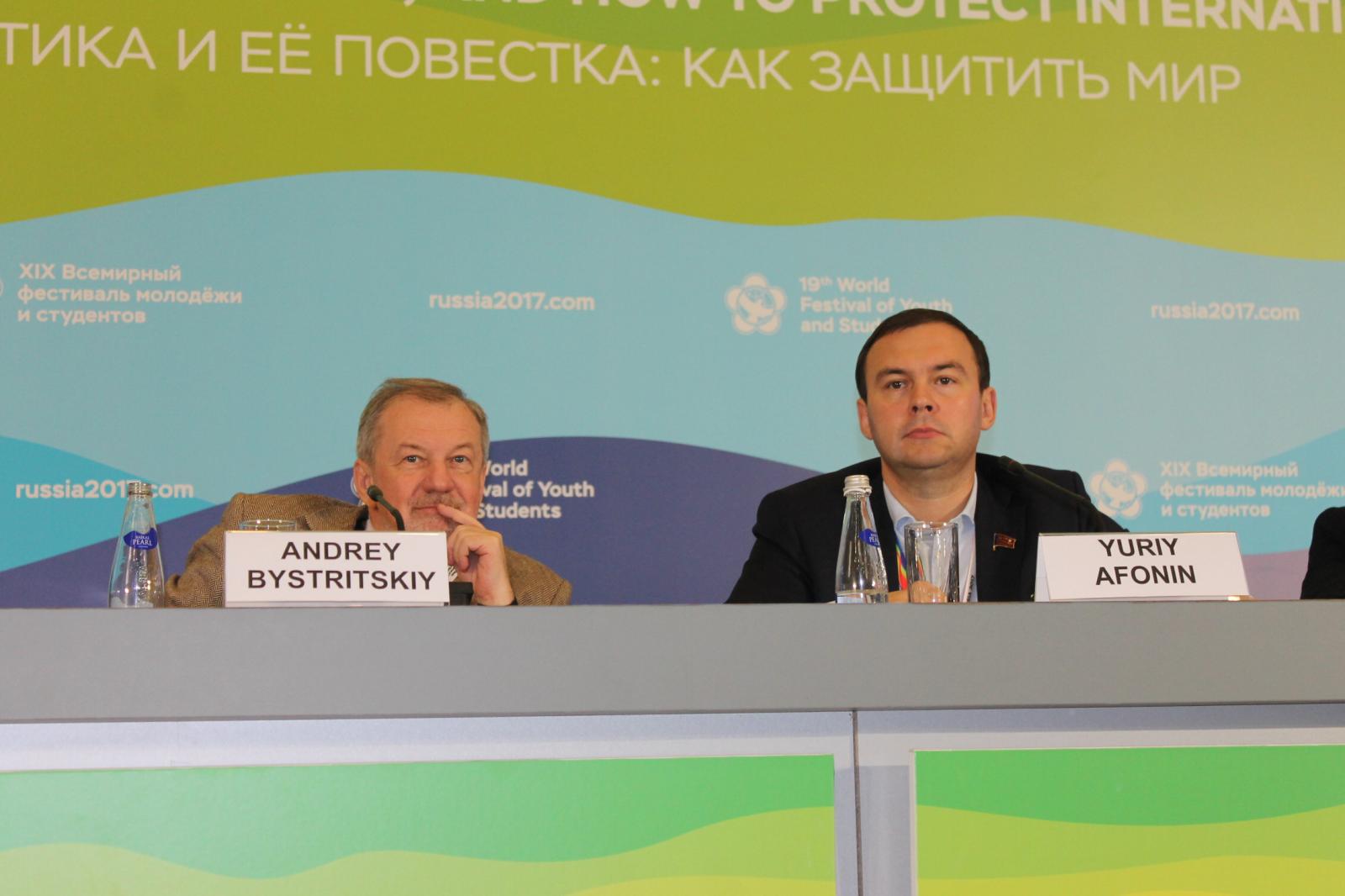 В Красной Поляне завершилась четырёхдневная работа международного дискуссионного клуба «Валдай», после чего ряд его спикеров на одной из площадок Всемирного фестиваля молодёжи и студентов обсудили проблемы глобализации. В дискуссии принял участие заместитель Председателя ЦК КПРФ, депутат Госдумы Юрий Афонин.