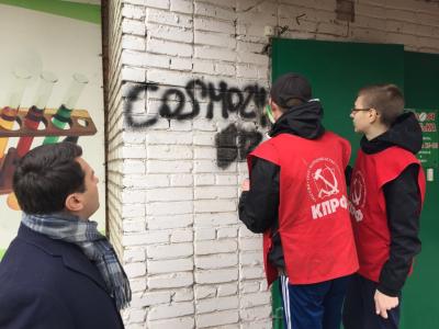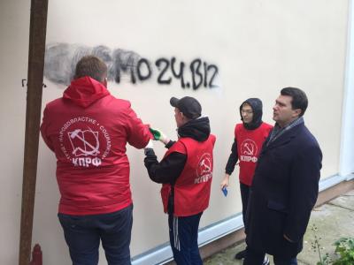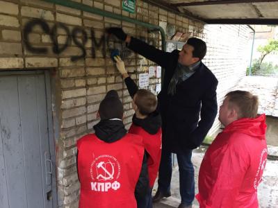 Тульский обком КПРФ проводит серию акций "Стоп наркотики!". На этот раз в течение только одного дня с помощью специального растворительного средства, ацетона и тряпок было оттерто несколько сотен надписей в разных районах города Тулы.