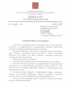 Недавно в ходе рабочей поездки в Казань заместитель Председателя ЦК КПРФ, депутат Госдумы Юрий Афонин провел встречу с представителями инициативных групп обманутых дольщиков. По итогам встречи направлен депутатский запрос министру строительства РФ Михаилу Меню.
