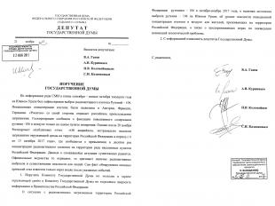 В среду, 22 ноября Государственная Дума приняла Протокольное поручение депутатов-коммунистов В.А. Ганзя, А.В. Куринного, Н.В. Коломейцева, С.И. Казанкова Комитету ГД по экологии и окружающей среде и Комитету ГД по энергетике, в связи с распространившейся в ряде СМИ информацией о выбросе радиоактивного изотопа Рутений-106 на Южном Урале.
