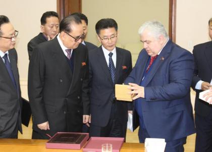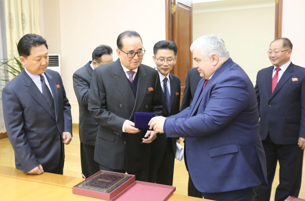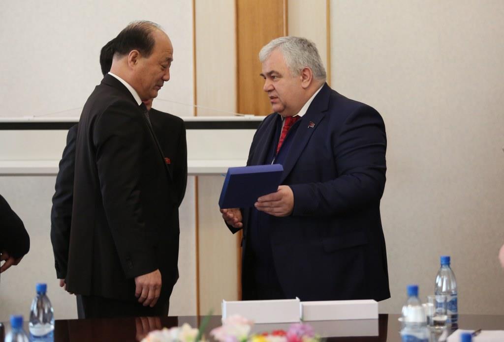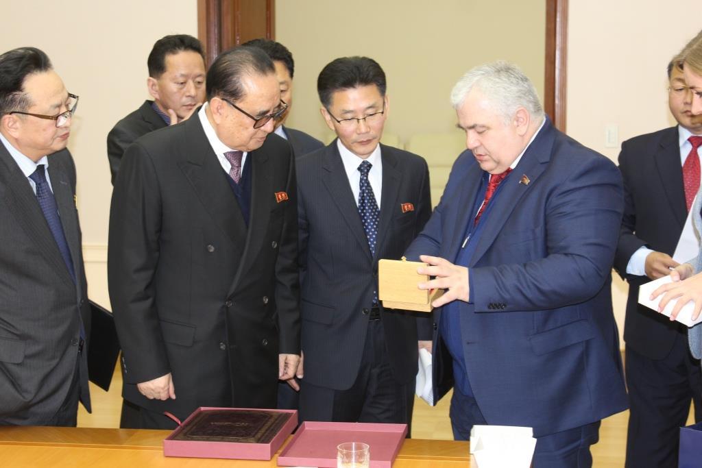 С 27 ноября по 1 декабря в Корейской Народно-Демократической Республике находилась с официальным визитом делегация депутатов Государственной Думы ФС РФ под руководством секретаря ЦК КПРФ, первого заместителя Председателя ЦС СКП-КПСС, члена Комитета ГД по делам Содружества Независимых Государств, евразийской интеграции и связям с соотечественниками, координатора депутатской группы Государственной Думы по связям с Парламентом КНДР Казбека Куцуковича Тайсаева.