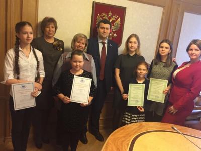 В завершении года экологии в Государственной Думе были подведены итоги VIII международного конкурса детского рисунка «Мы в ответе за тех, кого приручили..!», посвящённого Международному Дню защиты бездомных животных. Победителей и финалистов поздравил и вручил благодарственные грамоты депутат Госдумы, председатель подкомитета по агроэкологи О.А. Лебедев.