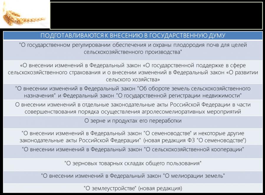 направленных на системное развитие сельского хозяйства, находится в разработке.