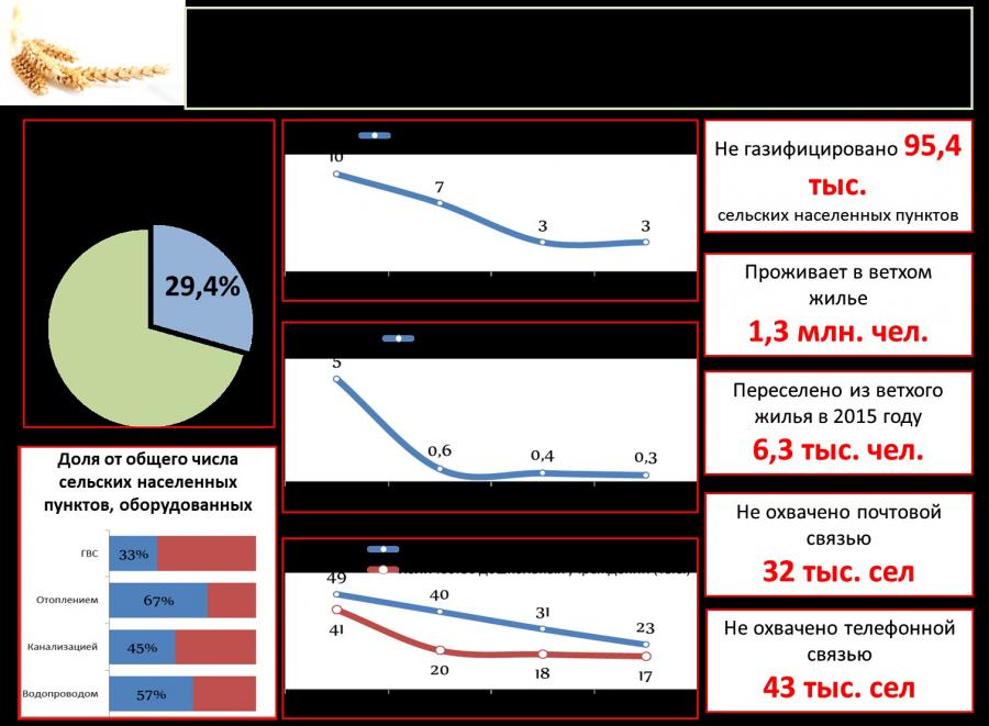 автомобильных дорог. На начало 2015 г. 30,7% сельских населенных пунктов не