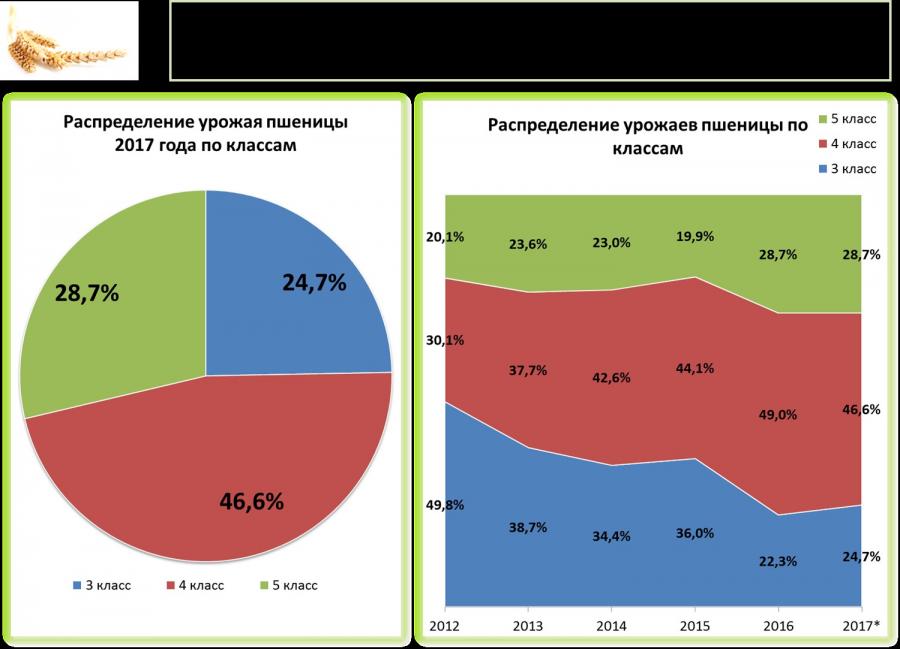 третьего класса – с 36% в 2015 году до 22,3%. Доли пшеницы 4 и 5 класса