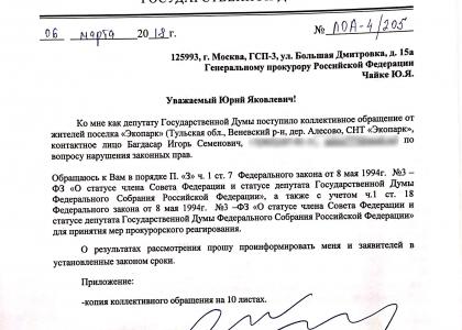 Люди решили бороться за свои права. Однако все обращения в местные инстанции ни к чему не привели. И тогда они решили обратиться к депутату-коммунисту Госдумы Олегу Лебедеву.