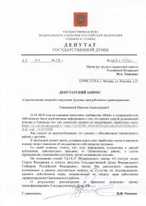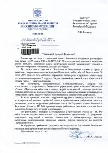 труда и социальной защиты письмо с требованием разобраться в данной ситуации и