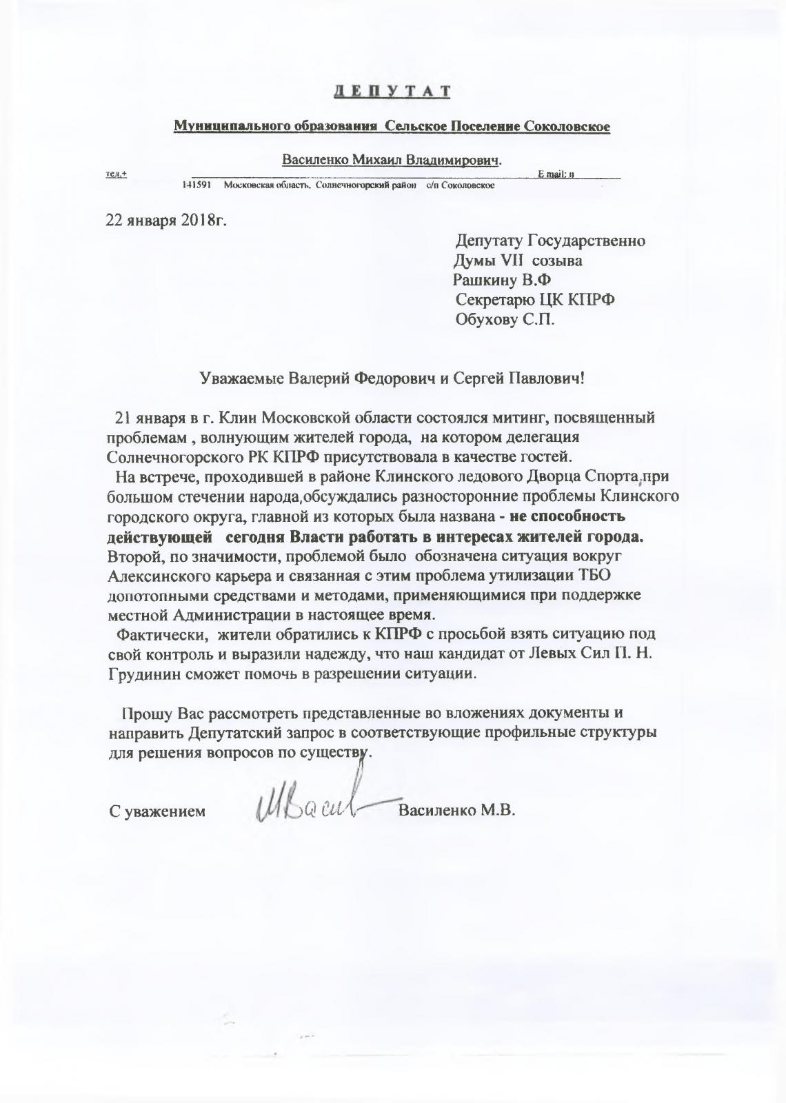 В.Ф. Рашкин, тщательно ознакомившись с данной письмом, напоминающим скорее