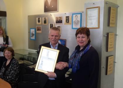 От имени учеников и родителей директор школы передала Сергею Михайловичу Пантелееву слова благодарности и памятный адрес.