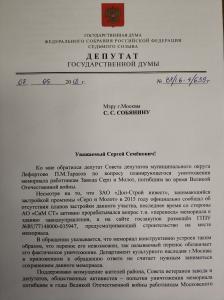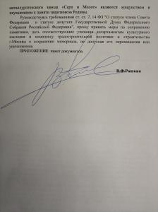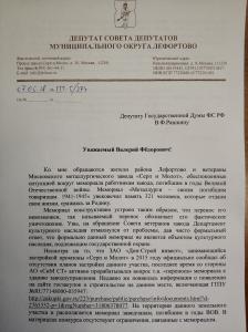Депутат Госдумы от КПРФ Валерий Рашкин подключился к решению вопроса. В своём письме на имя мэра Москвы Сергея Собянина он отметил, что попытки уничтожения мемориала погибшим в годы Великой Отечественной войны являются кощунством и неуважением к памяти защитников Родины.