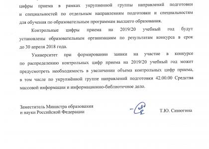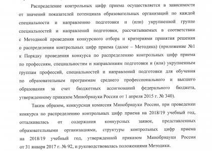 разрешении проблемы, возникшей в связи с контрольными цифрами приема на