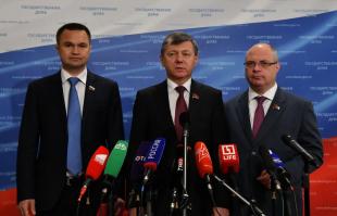 21 июня, предваряя пленарное заседание Госдумы, перед журналистами выступили первый заместитель председателя Комитета ГД по международным делам Д.Г. Новиков, председатель Комитета ГД по развитию гражданского общества, вопросам общественных и религиозных объединений, заместитель председателя Комиссии ГД по правовому обеспечению развития организаций оборонно-промышленного комплекса РФ С.А. Гарилов и член Комитета ГД по экономической политике, промышленности, инновационному развитию и предпринимательству С.И. Казанков.