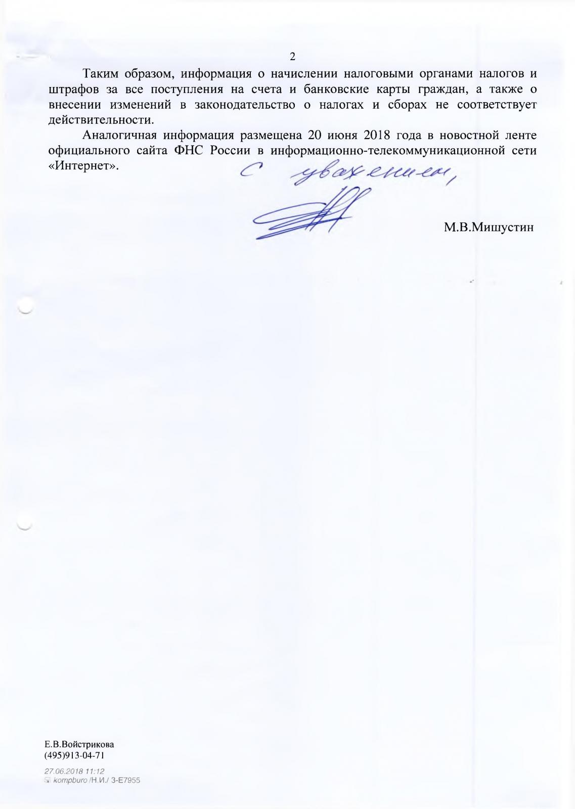 Глава ФНС Мишустин опроверг заявления о готовящемся налоговом контроле над банковскими счетами физических лиц. Именно такова суть ответа, поступившего депутату Государственной Думы В.Ф. Рашкину на его депутатский запрос.