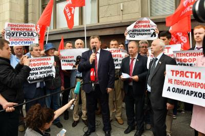 Завершил свое выступление депутат-коммунист лозунгами: "Нет людоедской пенсионной реформе!" и "Правительство - в отставку!", которые были подхвачены всеми участниками акции.