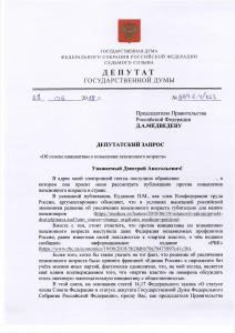 В конце июня депутат Государственной Думы В.Ф. Рашкин направил в адрес премьер-министра Дмитрия Медведева депутатский запрос, в котором призвал премьер-министра отозвать антинародный законопроект или создать условия для объективного обсуждения его необходимости общественностью.