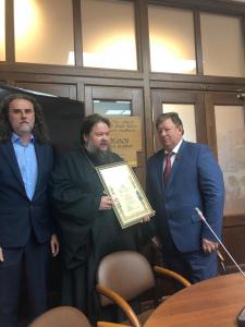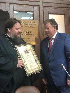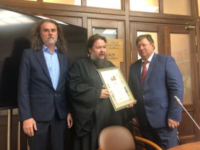 В наградном документе говорится, что Владимир Иванович поощрен грамотой «во внимание к поддержке церковно-общественных инициатив и в связи с 70-летием со Дня Рождения».