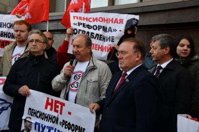 26 сентября, в день рассмотрения Государственной Думой во втором чтении людоедского закона о пенсионной «реформе», депутаты-коммунисты провели встречу с избирателями возле здания на Охотном ряду.