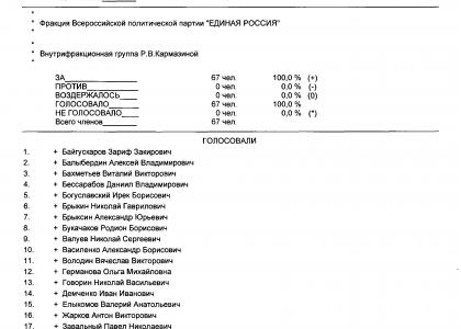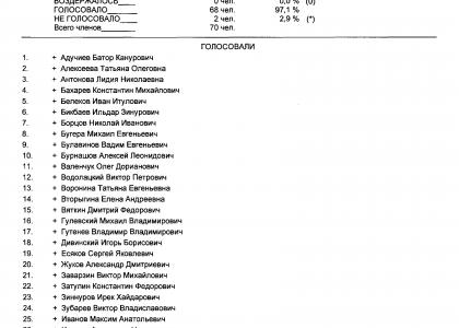 Итоги голосования: за – 332 человека, против – 83 человека, воздержалось – 0 человек, не голосовали – 35, Всего голосовало – 415. Результат – принято.