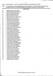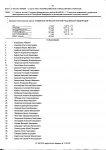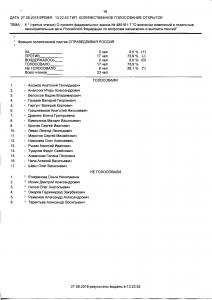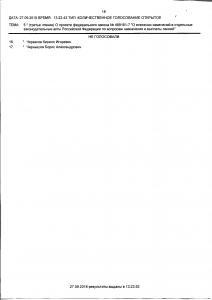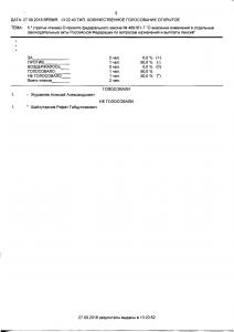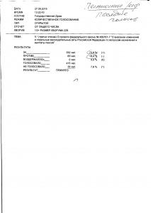 Итоги голосования: за – 332 человека, против – 83 человека, воздержалось – 0 человек, не голосовали – 35, Всего голосовало – 415. Результат – принято.