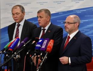 18 октября, предваряя пленарное заседание Госдумы, перед журналистам выступили первый заместитель председателя Комитета ГД по труду, социальной политике и делам ветеранов Н.В. Коломейцев, председатель Комитета ГД по делам Содружества Независимых Государств, евразийской интеграции и связям с соотечественниками Л.И. Калашников, председатель Комитета ГД по развитию гражданского общества, вопросам общественных и религиозных объединений, заместитель председателя Комиссии ГД по правовому обеспечению развития организаций оборонно-промышленного комплекса РФ С.А. Гаврилов.