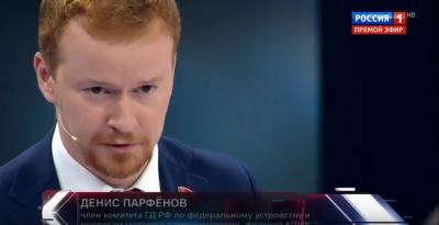Сегодня в передаче «60 минут» (ТВ Россия-1) депутат Госдумы Денис Парфенов участвовал в обсуждении положения на Украине, в том числе, и растиражированное в мировых СМИ видео, как в одном из детских лагерей Тернопольской области учат детей обращаться с оружием, «чтобы убивать ненавистных русских и жителей Донбасса».