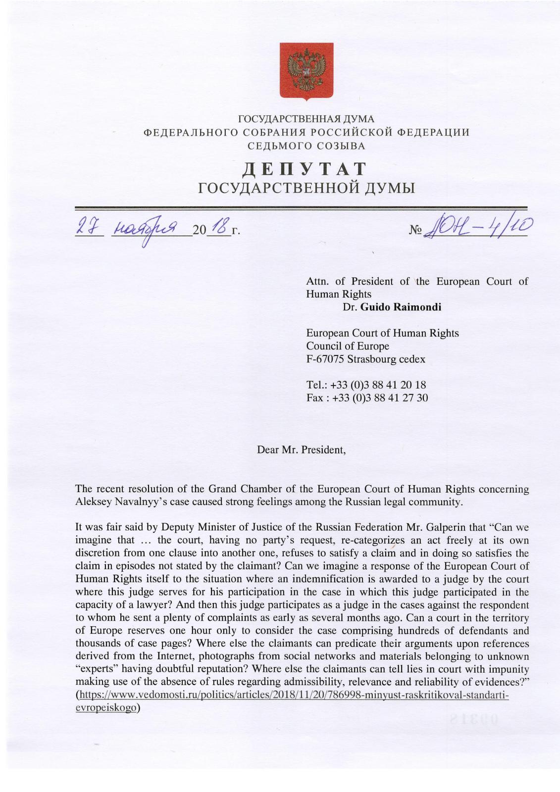 like to hope that thorough and reasoned reply to a Russian Parliament