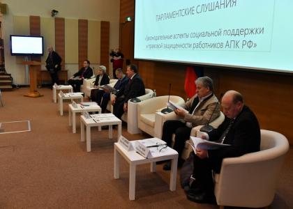 12 декабря 2018 года в Малом зале Государственной Думы под председательством заместителя Председателя ЦК КПРФ, Председателя Комитета Государственной Думы по аграрным вопросам, академика РАН В.И. Кашина состоялись Парламентские слушания на тему «Законодательные аспекты социальной поддержки и правовой защищенности работников АПК».
