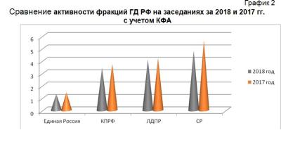 Сравнение активности фракций ГД РФ на заседаниях за 2018 и 2017 гг. с учетом КФА