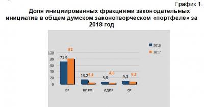 Доля инициированных фракциями законодательных инициатив в общем думском законотворческом «портфеле» за 2018 год
