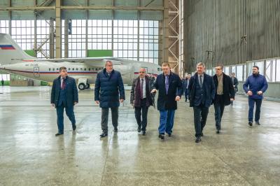 на аэродроме ВАСО, делегация встретилась с руководством и трудовым коллективом авиазавода.